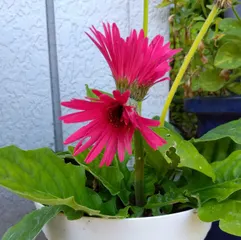 双子のガーベラ 蕾が付いてると思って見守っていたら1本の茎に2つのお花が咲きました😊🎶普通の茎よりも太く同じ場所から出たのでくっついてる様にも見えます😉💕🎵