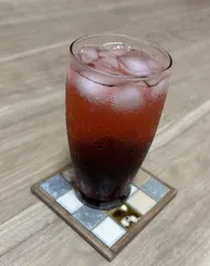 自家製ブラックベリー酢の炭酸割り 裏庭でとれたブラックベリーを酢で漬けてみました。綺麗な色になりましたので炭酸ドリンクにしていただきました。漬けた実も甘酸っぱくて美味しい😋
