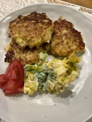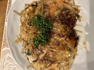 もやしと大葉、鶏胸肉ミンチのお好み焼き風
