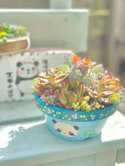 楽しい多肉の寄せ植え 今日はハリ子さんにお誘いいただき多肉の寄せ植え教室へ行ってきました😊 しかも私は先週に引き続き2回目🤭 今回はモリモリに寄せ植えしたくて大好きなパンダ柄🐼の鉢にしました💕 寄せ植えも楽しかったけどご一緒したハリ子さん、きょろっちさん、ゆーさん、さくらさんとても楽しい時間