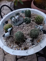 サボテンを植える サボテンを8個植えても余りあるデカい鉢、これから100均に行って、動物たちが逃げ出さないよう柵を買ってきます!