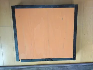 端材でキャスター付ストーブ台作り⚒️ カインズワークショップで端材150円を購入。塗料はダイソーで水溶ペイントオレンジ購入。部屋の掃除の時、重いストーブを動かすのが大変だったのでとても重宝します😁有り難いことです。 購入した物は⬇️キャスターは1個148円✕4個ビス118円
