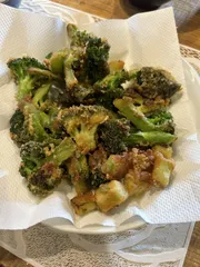 やみつきブロッコリー ■材料 ブロッコリー一房、醤油大1、酒大1、ニンニクすりおろし小2、生姜すりおろし小2、 片栗粉大2、小麦粉大2 ■作り方 ブロッコリーは、綺麗にあらったあと、水気を飛ばして、小房に切る、芯も、皮を厚切りにして、ひと口サイズに切る。 そのブロッコリー🥦をビニールふくろにいれて、醤油、酒、ニ