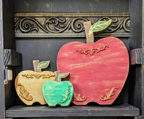 リンゴのオブジェ🍎🍏アレンジ 先日作ったリンゴのオブジェをアレンジしてみました‼️粘土で作ったパーツを付けて、ゴールドでの汚し✨リッチ感がでました😆✨配置に悩みましたが、出来上がってみての1番のお気に入りは、青リンゴ🍏です✨仕上がりには満足してますが、せっかくお迎えしたニャッキ!が似合わなくなってしまったかも💦