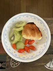 米粉パン 昨日作ったカインズで購入した米粉パンキットで作ったパンを輪切りにし、今朝はトースターで焼いた。庭で採れたミニトマトと、スーパーで購入したキウイを添えて朝ごはん。もうミニトマトの、スィートプラムも終わりかな。来年は3株植えようかなぁ。甘くて美味しかった。