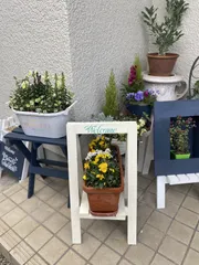WSで作った作品たちで玄関が華やかに🤗 昨日WSで作ったフラワースタンドを玄関に置く事にしました。今までにWSで作ったミニベンチ、看板付き鉢置きスタンド、フラワーフレーム。グリーンWSで作った寄せ植えな4種類。WSに参加する度に玄関が華やかになり嬉しいです。🤗