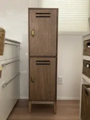 ロッカー風チェスト 先月参加したロッカー風チェストは、作業が長時間で大変でした。やっと設置して、ペットボトルのお水を入れました。写真は撮れなかったですが、猫がさっそく扉を開けていました🤭もう一つ作る機会があったら、猫のフードストック置き場にでもしたいですね。