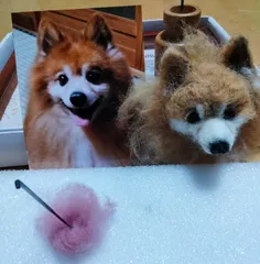 愛犬メモリアルプレート作成中🙏6月お空🌈へ 写真見ながらこのワタワタで少しづつパーツごとに形のベース作りをニードル針で作って行きます。耳と顔の形にカラー植毛ようの羊毛を付けて行きますキャッチ画像は作り初めて7時間後ですこれから可愛い👅ベロ作ってお口に付けます…後は目と鼻のパーツを付けて…全体の体毛のカラーグラデーション付けて額に付けたら出来上