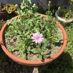 モモイロタンポポ咲きました!\(^▽^)/ 黄色のタンポポは見慣れているので、モモイロのタンポポを育ててみました。鉢を用意して正解でした。\(^▽^)/ 本当に桃色なんですね。名前もそのまんまとは……。 タンポポ茶とか飲めるかな~?松葉茶は薄い色で薄い味だったけど、タンポポ茶はどうなんだろう?ヾ(´ρ`)〃