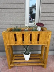 アレンジしてみました🌺 ワークショップで作成したプランタースタンドにカインズで買った春の花を植えてみました♪花がたくさん咲くのが楽しみでーす🤗