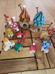 イベントに向けた作品のようやく最後の作品が完成しました😭3週間、長かったー😭💦 最後はつちだまの家の一輪挿し👍屋根の色、ご提案頂いた皆様ありがとうございました😊🙏 あとは、🏠オブジェ!中は空洞なので、灯りも灯せるよ👍明日はこうやって👇飾ってみせたいと思います🫡