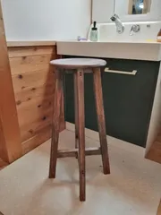 洗面所の椅子 ちょっと高めだけど、、、 2階で子どもたちが使っている洗面所用の椅子に。ちぃっと高いかな。でも、いい感じ✨