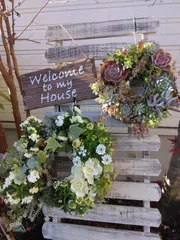 リングリース 大好きな白花のリングリースと多肉のリングリース作りました!