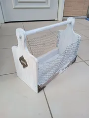 100均で作る🛠簡単アンティーク風オカモチ!! 100均アイテムを中心に使用し、アンティーク風オカモチを作ってみました🫡 以下、簡単な作業工程です👇 ①材料を準備する。今回は、DAISOで買った板と残っていたチキンネットを使いました👇※側面はネットじゃなくても、底板と同じ板2枚追加して購入すれば、囲えると思います👍②材料をカッ