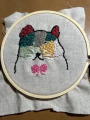 素敵💓ですね。👍 ちゃんと猫ちゃんだって分かりますよ🥰✨ ダーニング刺繍って言うんだね💕 近所でやってたのかなぁ?