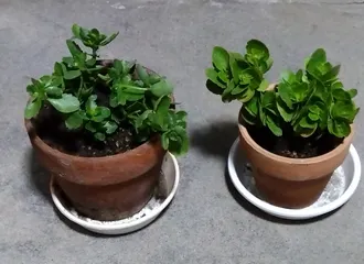 カランコエの植え直し 急に寒くなってきたので家の中に移動する前に植え直しをしました😊🎶右が赤、左はピンクです😉💕🎵