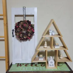 カインズ購入品とWS作品を飾ってみました 以前作ったワークショップの作品や今年購入したカインズのリースを飾ってみました😊お気に入りの作品ばかりです🎄※以下カインズクリスマス部門のみ入力■使用した商品ゆぴのこさん監修の木製ツリーカインズ購入品のリースと陶器のおうちB&Bベンチアンティーク風ミニドア折りたたみラダー