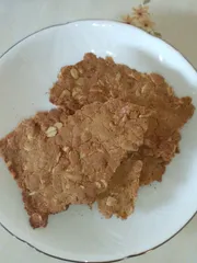 オートミールクッキー また作っちゃいました!左手負傷中につき、丸められないので天板いっぱいに押し付けて焼きました!好きなだけ割って食べます! 米粉の代わりにおからパウダー、くるみがあったので粗みじんに刻んで入れました!