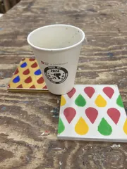 悩んで悩んで、やっと色を決めました😁ベース2色、コースター1枚につき3色選ぶんです😅1つはグラデーションに挑戦してみましたもう1つは色を混ぜずにそのまま色をのせて、余ったホワイトでイニシャル入れました😁まぁまぁ上手く出来たかな😊