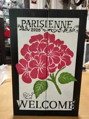 タイニーサインボード少しアレンジ💕 紫陽花の種類の名前…パリジェンヌのロゴ加えてみましたついでにちっこいプードル🐩のイラストも描いてみちゃった💕
