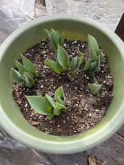 昨年4月にダブルデッカーで植えたチューリップ🌷が咲いたと投稿しました。 そのあと、咲き終わり.,..鉢が大きかったのでそのままに💦💦💦💦植え替えもせずにそのままに🪴2月はじめふと見たら芽🌱が ごめんなさい🙇♀️忘れてた‼️💦 少し大きくなりました!! 咲くの