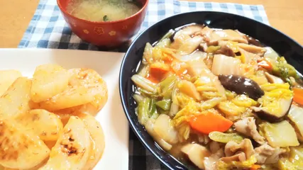 白菜1玉買っちゃいました(*´艸`*)250円…高いのか安いのか分かりません。冷蔵庫に大根あるのに、大根98円も買っちゃいました。白菜、人参、ネギ、豚バラ、椎茸を炒めて、白だしと醤油で煮てとろみつけました。あとは大根レンジでチンして、フライパンで焼き目付けたら、みりん、味噌、七味で味付けした物。冷凍