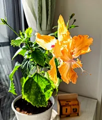 我が家の2段咲きハイビスカス、室内が好みらしい。🤣
