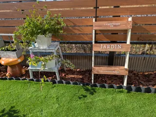 ラダープランターのアレンジ 今日は🌞暖かくとても気持ちのよい日です。ラダープランター、ステンシルをしてフェンスに立てかけてみました😊まだ、何を飾るかは思案中です😅