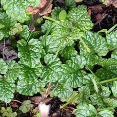 レモンバームの冬の姿 冬には存在を忘れてしまうレモンバーム、夏の暑い日にハーブティーに使う、あにーには大切なハーブです。健在を主張しています💪