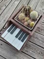 ピアノ型プランターに寄せ植えした植木鉢入れました… ■作品内容ミニサボテン寄せ植え■工夫ポイント手前の細長いのは胴切りしたものです※以下多肉ハック部門のみ入力■材料■工程
