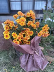 鉢植えの菊を花束に