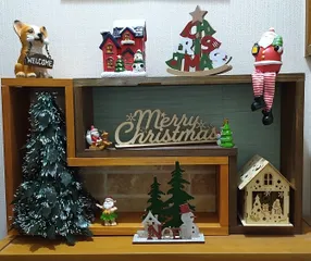 クリスマスの飾り付け L型シェルフに飾り付けしました。