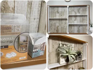 お隣さんに接してる使ってない窓を潰して、ディアウォールで窓枠一面に飾り棚を作りました♪プラダンにリメイクシートを貼り付けて、窓枠の存在を消してみた☆2×4に色を塗るのが時間かかったくらいで、後の作業は2時間DIY。女子でも楽々棚作り出来ました♪