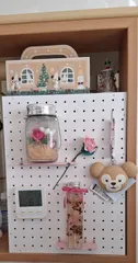 高さ自由ラック カスタマイズ ■作品内容高さ自由ラック ■こだわりポイントキッチンカウンターに置いたので、両面使えるようにしました。背面の有孔ボードには、専用の金具でラックを設置!板を大好きなピンクに塗装。 前面は、買ってきた端材で棚の数を増やし、これもピンクに塗装。1番下の段には、karimokuのLハーフ