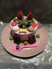 モルタルケーキ ■作品内容いちごの🍓ケーキ■こだわりポイントモルタルでケーキを作り、真ん中にグリーンを植えられように、底にネットを張っています。