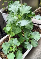 去年の葉牡丹を『踊り葉牡丹』にしたいなぁと思ってます。 寄せ植えた葉牡丹です。一緒にパンジーと千両も植えたのに白い葉牡丹だけ残りました。ご近所奥さんのお勧めです。白だけで見た目も淋しいので家裏で夏越ししました。一時期は虫に食われて穴だらけ😂😂😂ちゃんと『踊り葉牡丹』候補として残れているでしょうか?暑い夏、どうにか乗り越えました。どう、仕立てるのかなぁ?消