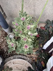 葉牡丹 去年の寄せ植えを軒下の隅に植えたんでしょうね🤔色のない庭の隅でひっそりきれいな色になってます。寒さに強いんですね😉