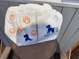オリジナル散歩バック 肉球とシュワイザーをステンシルしましたおひげが綺麗にステンシルできました