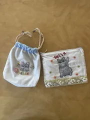いつも一緒だよ、刺繍&小物作り いつも一緒にいたくて、愛猫をモデルに刺繍をした巾着袋とポーチを作りました。