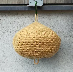 蜂の巣ダミー ■作品内容アクリル毛糸で蜂の巣ダミーを編みました🐝 ■こだわりポイント蜂の巣の質感が出るように編み方を工夫しました。屋外インテリアになればいいなと思います。