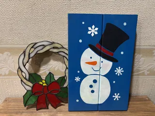冬になるとブルーがより寒々しい様に感じますが、やっぱり青🟦をベースにしましょう!って決めて雪だるま⛄️をトントン私にしてはシンプルに仕上げたと思いますほんのりピンク🩷の頬で可愛くしました帽子はブラウンや紺色なのですが黒に見えますね?!やっぱりB&bは楽しい😃