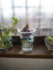 カインズで妹に「ヒヤシンス、いい香りがするんだよね‼️20個入りだから、半分こしない?」と言われ、早速スタバの入れ物に入れて、リキダスをポタリ💧もう、根が出始めてました✌️隣には、植木鉢から切り落としたポトスも根が出てます。その内、また、植木鉢に植えようと思ってます🥰