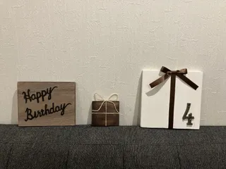 4歳になる息子へ 明後日4歳になる息子へ、端材を使ってちょっと小洒落た飾りを作りました。そのまま置いてもいいし、持って写真撮ることもできるかなぁと。当日が楽しみ♩ happy birthdayの飾りの木は、ペンキの色を薄めて塗ってみたのですが、私が好きすぎてハマりそうです!