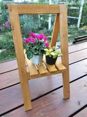 フラワースタンド2段 昨日、フラワースタンドを作ってきました。やっぱり、まだまだ初心者🔰でガタガタしていて手直しを先生に手伝ったいただきました‼️もっと上達したい😭 色はやっぱりウォルナット‼️でも一緒に作っていた上級者の方が使っていた撥水のブラウンも心引かれました。 ちなみに私の作品は、左です😊