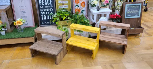 フラワースタンド🌿 フラワースタンド 今回はパインで塗装しました😄 家にあったお花を置いてみた!次回は、フラワーフレーム🎞 同じパインにするか、色を変えるか悩むなぁ〜🤔