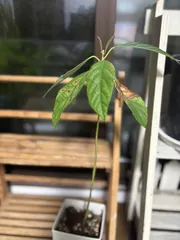 種からのアボカド 夏の間外に出してたら葉が茶色に😅部屋に戻しました。
