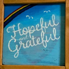 Hopeful & Grateful ミニサインボード 自宅で少しアレンジしました 明るい未来に向かって! 空に、かすかに、💕を埋めました!
