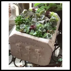 お気に入りの鉢に♪ 真四角のフォルムが気に入って買っておいた鉢に、ちまちま寄せ植えをしましたむずかしい💦でも、可愛いからいいや😆