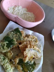 収獲した野菜で天麩羅 青紫蘇、カボチャ、オクラの天麩羅を揚げました😄収獲した野菜達です😊素麺とおいしくいただけました😋🎶
