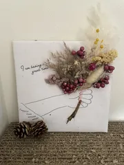 ありがとうございます😊 パネルもドライフラワーも100均です♡ ですので絵は書いてあるものです。 私には描けないです💦笑
